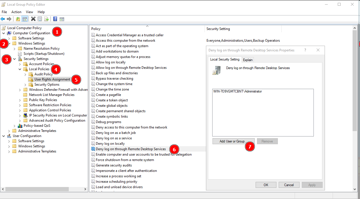 Windows: disable rdp for specific user
